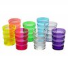 Disponible en varios colores: amarillo, azul, incoloro, naranja, rosa, verde, o violeta